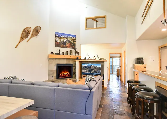 The 126 m² Twin Elk Lodge Lodgepole Condo: Ski In, Stroll To Main St Breckenridge includes a patio and is situated nearly a 5-minute stroll from the Breckenridge Riverwalk Center|the Breckenridge Riverwalk Center Adm. The Hoosier Pass is in the vicinity of the apartment, and the BreckConnect Gondola is only 0.8 km away.